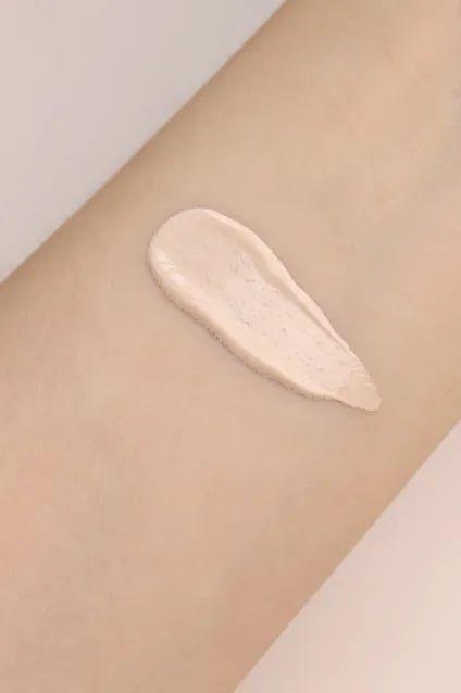 它的质地类似于豆腐霜,流动性和延展性都很不错,柔润易推开,几乎看不到粉质,触肤即能均匀得融合于肌肤。