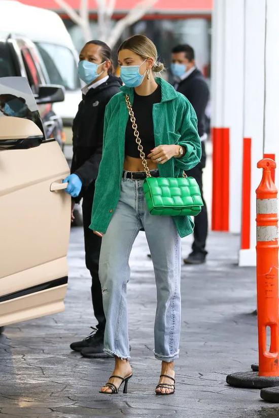来自Bottega Veneta的爆款云朵包,现在就多了链条肩带。海狸Hailey Bieber把它当腋下包,大嫂Rosie HW则把它抱在臂弯里,都显得富有质感。