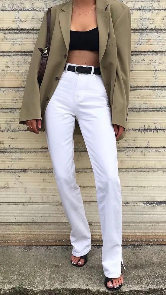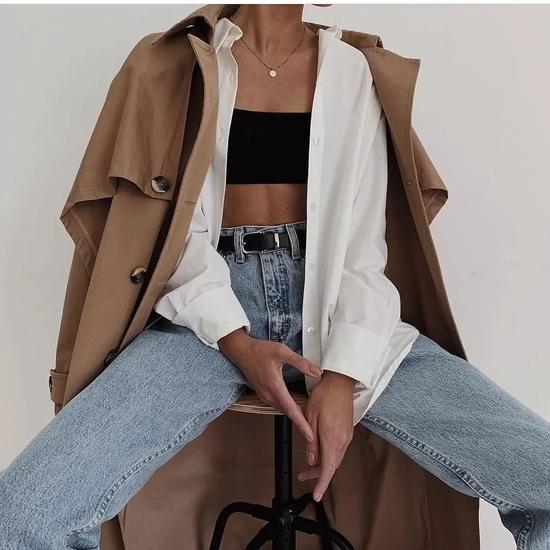 前段时间在ins上很流行把bra当上衣穿,但这种穿法在国内完全穿不出门,现在把它放进外套里面就刚刚好,隐隐约约的性感。