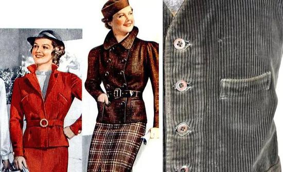 到了20世纪,灯芯绒逐渐普及。不过当时,灯芯绒面料主要还是运用在男装中,特别是西服。
