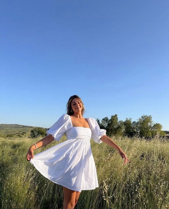 贝拉很善于借助打造氛围感,比如这条法式白色泡泡袖的造型就极为惊艳~ 性感和清新都有,怎么都看不过时。