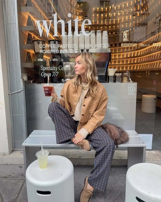整套格纹穿搭堪称“懒人方案”,稳妥的选择是材质统一的同色系格纹套装,内搭一件纯色毛衣区隔上下装,避免格纹过度叠加;也可以大胆尝试大格与小格的碰撞,注意上下装格纹走向错开,就能丰富视觉层次,且丝毫不显乱。