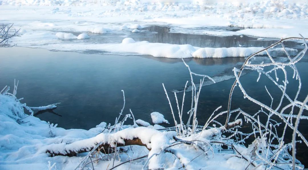 不仅不结冰,还有源源不断的热蒸汽从河面上冒出。