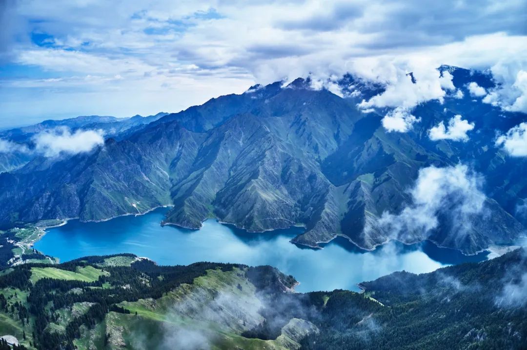 新疆的天山天池,大家一定都不陌生,春天的天池此起彼伏,那一泓碧波高悬半山,就像一只玉盏被岩山高高托起!
