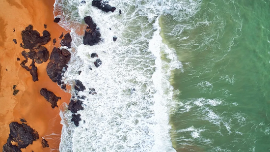 山钦湾是一片未开发的野生海滩,礁石和岩洞是它区别于其他海滩的独特标志,深黑给礁石添了一份神秘感。