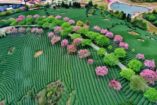 十万株樱花树,就藏在全国最大的高山乌龙产树种植基地中,樱花树和乌龙茶树互相呼应,别有一番风味。